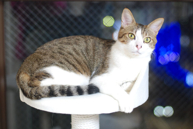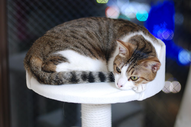 キャットタワーから外の景色を眺めるのがお気に入りの様子。